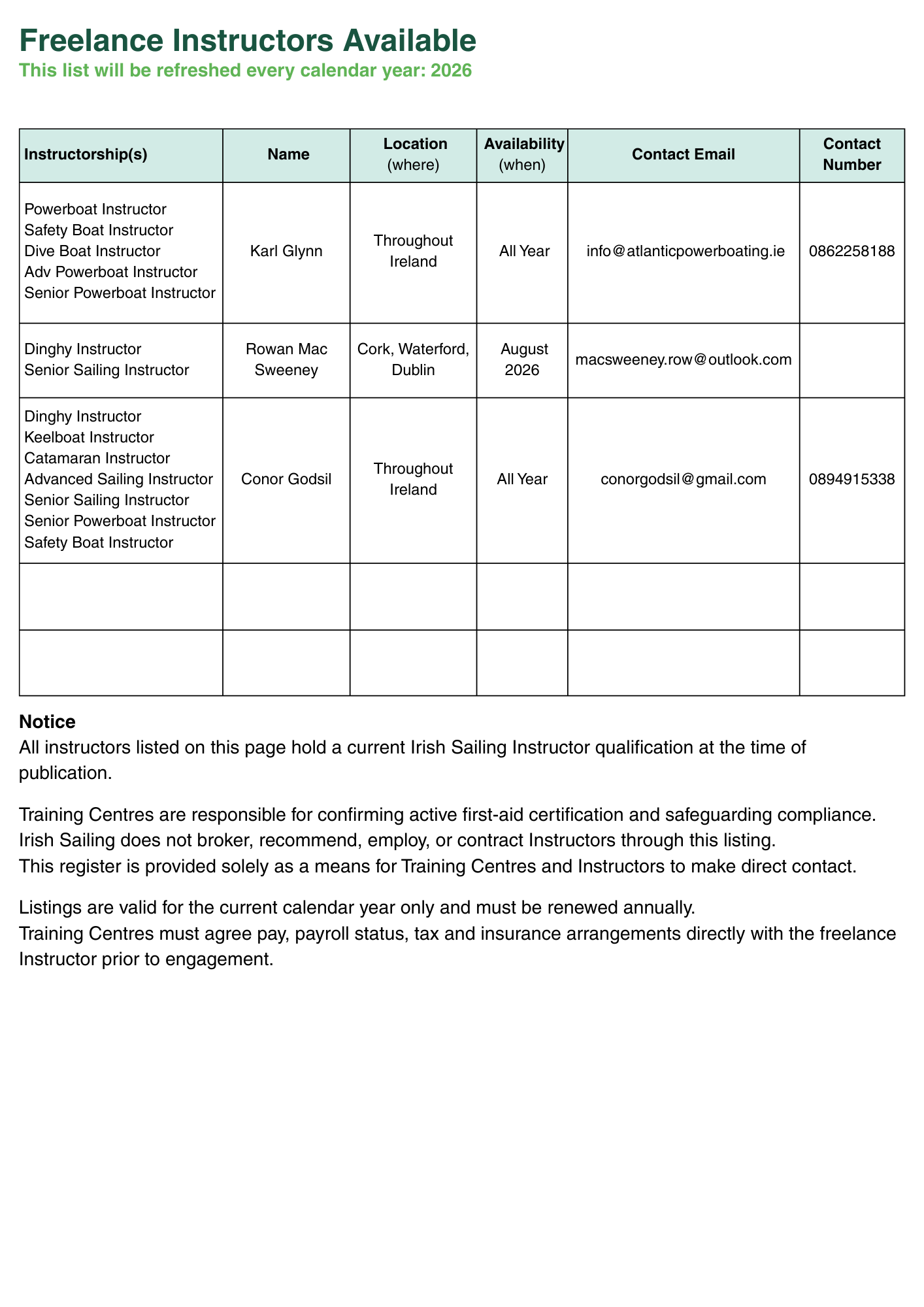 Freelance Instructor Availability Register HERE