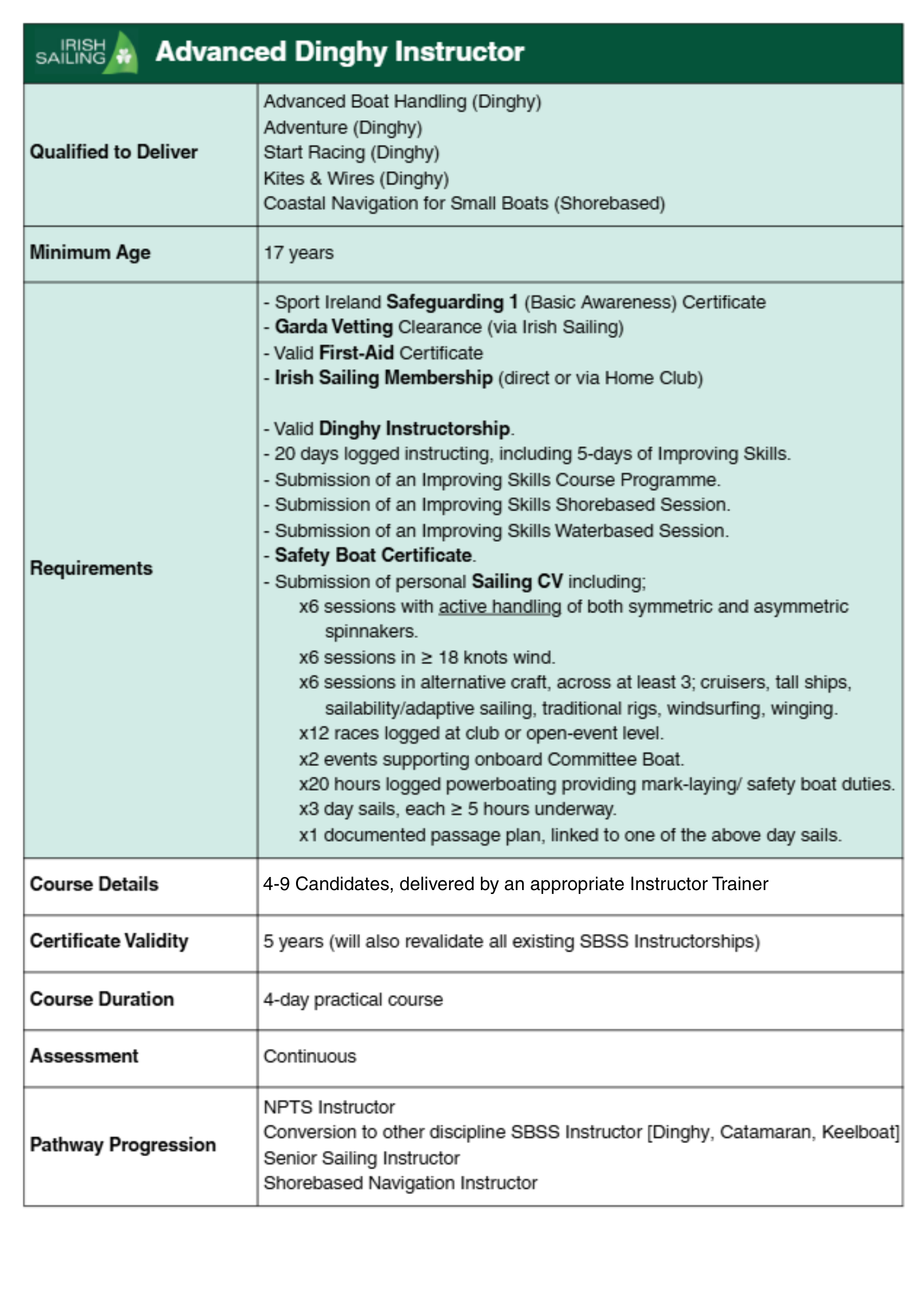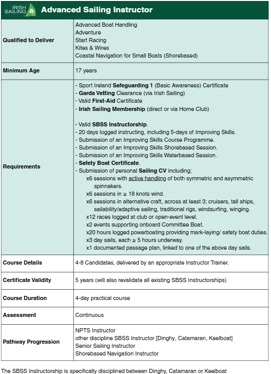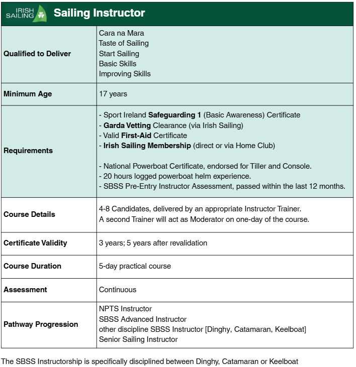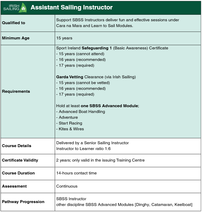 Training Centres are encouraged to utilise the Assistant Instructorship as part of a Trainee Instructor Programme.