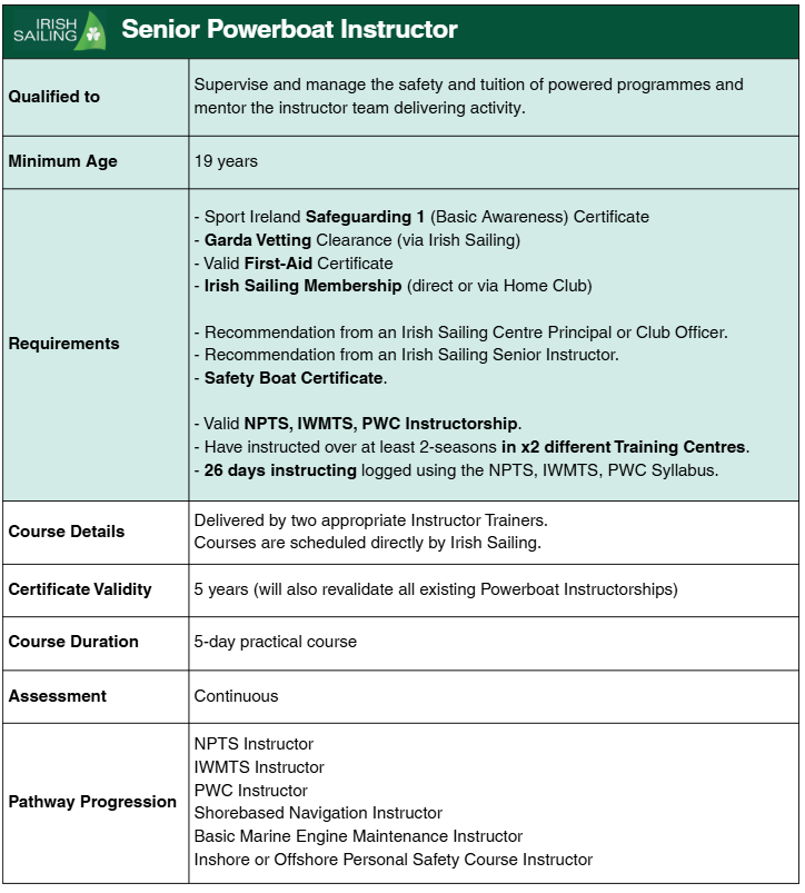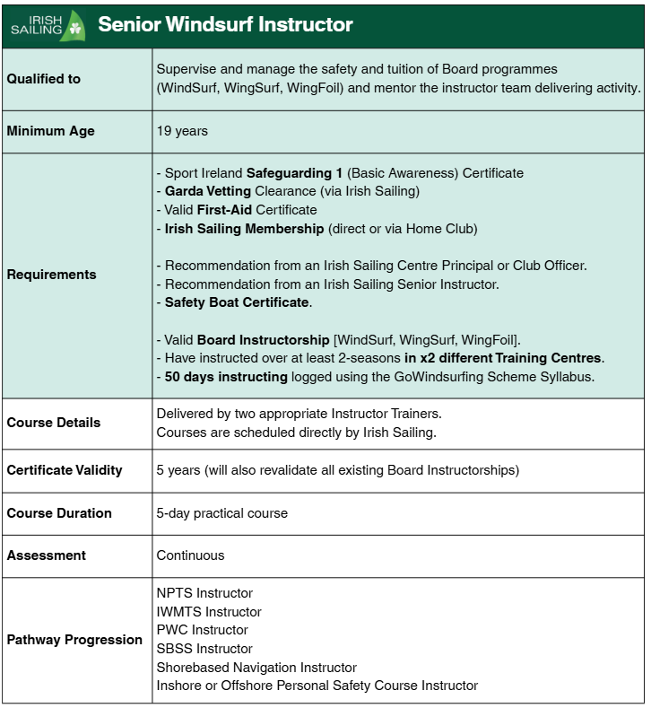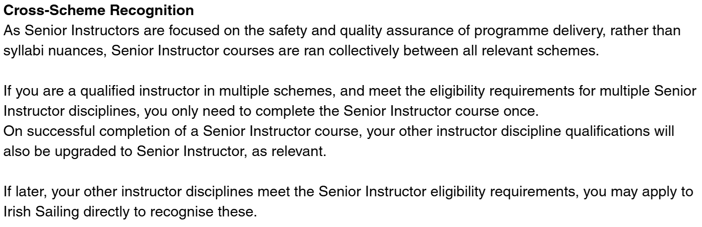 The Pre-Requisites to become an Irish Sailing Senior Instructor for all discilpines are;